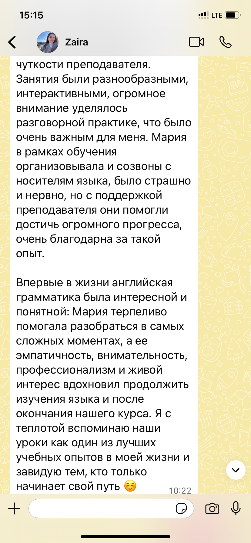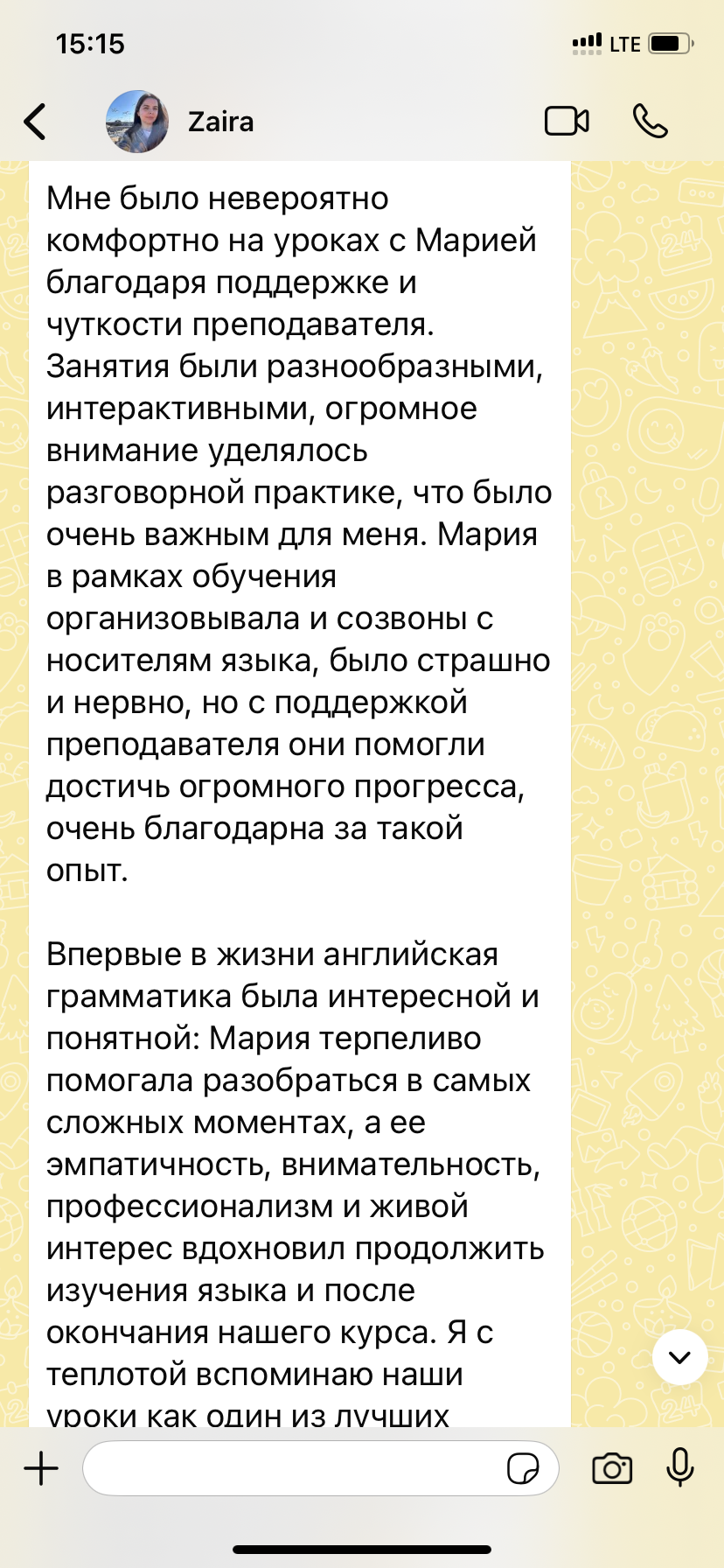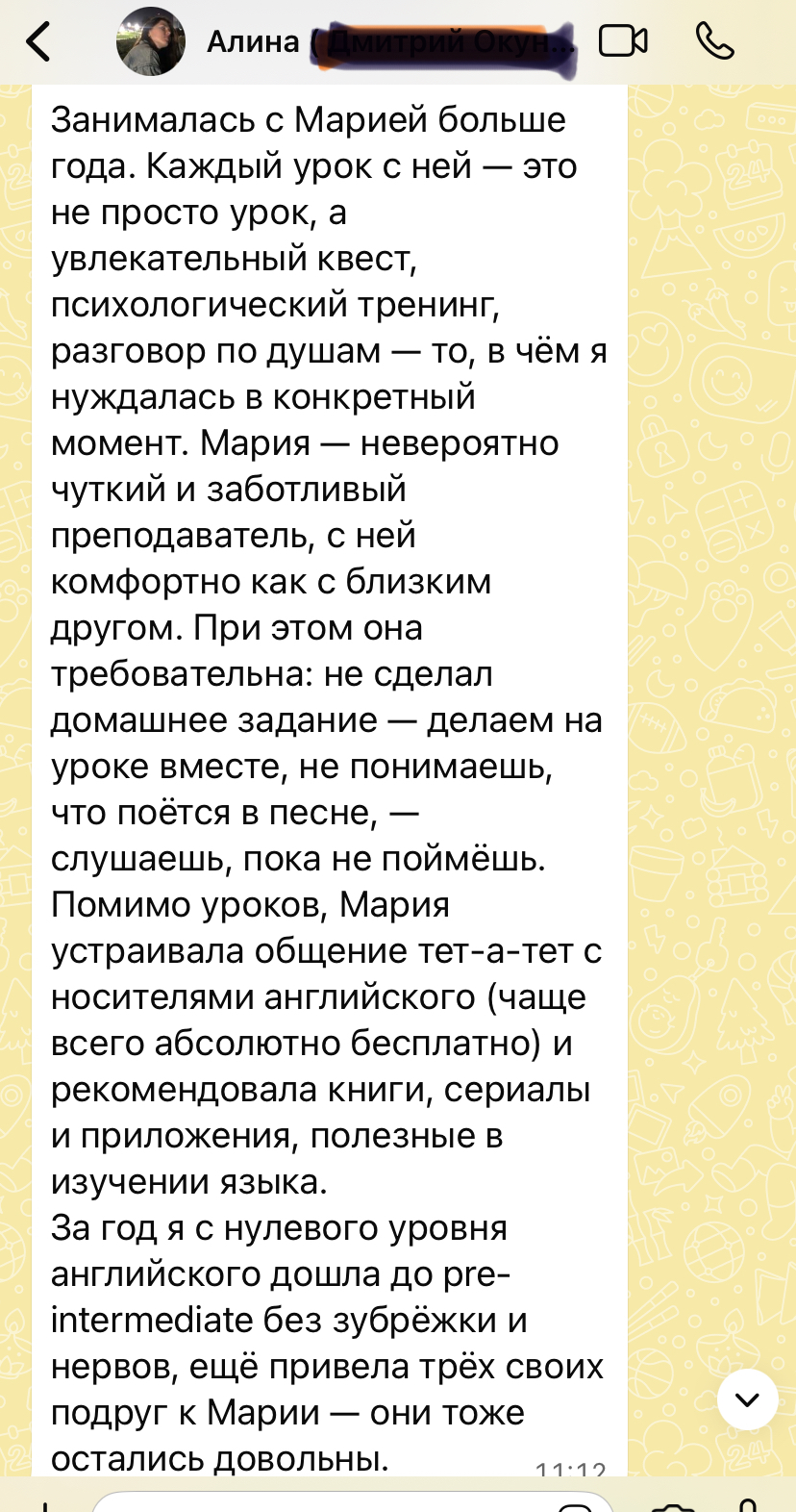 У моих учеников нет страха заговорить с носителем, так как для них я организую регулярные языковые практикумы с носителями. Проблема языкового барьера совершенно исключена.
